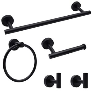 Bathroom Hardware Set, 5/10/20pcs Bathroom Hardware Set, Stainless Steel Bath Hardware Set Including 16" Hand Towel Bars, Toilet Paper Holders, Towel Rings, Robe Towel Hooks (5pcs, Black)