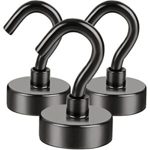 DIYMAG Black Magnetic Utility Hooks, 25Lbs Heavy Duty Rare Earth Neodymium Magnet Hooks with Nickel Coating for Kitchen, Cruise, Classroom, Workplace, Office and Garage etc, Pack of 3